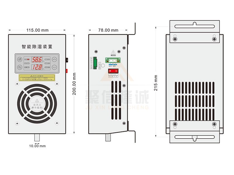 3、除湿风道主动引凝、排出气体加热降湿,有效达到了对电气柜密闭空间防潮除湿的综合治理;