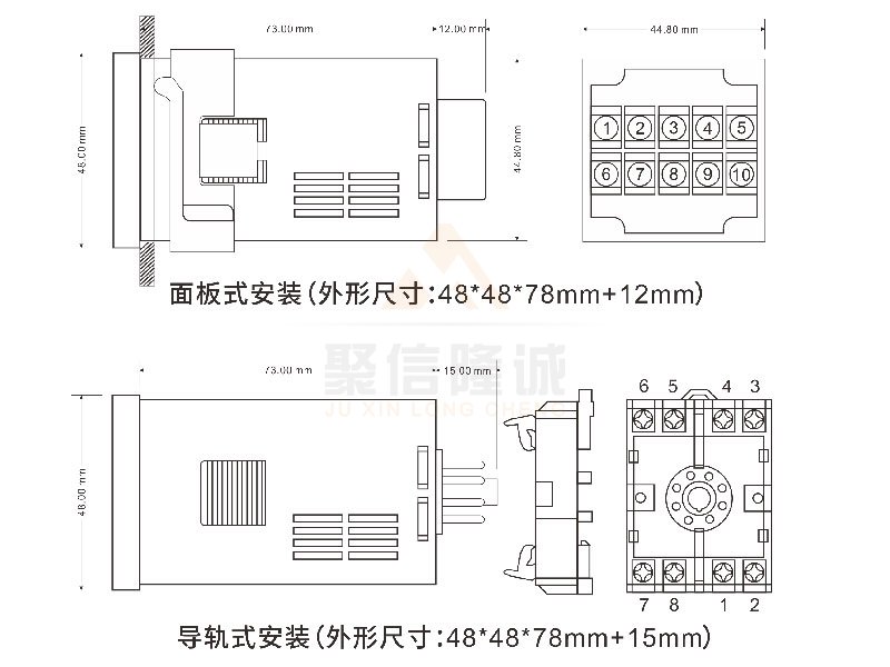 安装方式:导轨式安装,面板式安装(开孔尺寸:45X45)